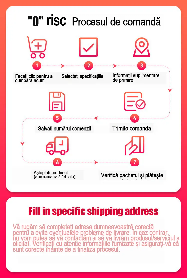 🚚Pentru o livrare mai rapidă, vă rugăm să vă asigurați că adresa de livrare este completă și corectă pentru a facilita livrarea.
